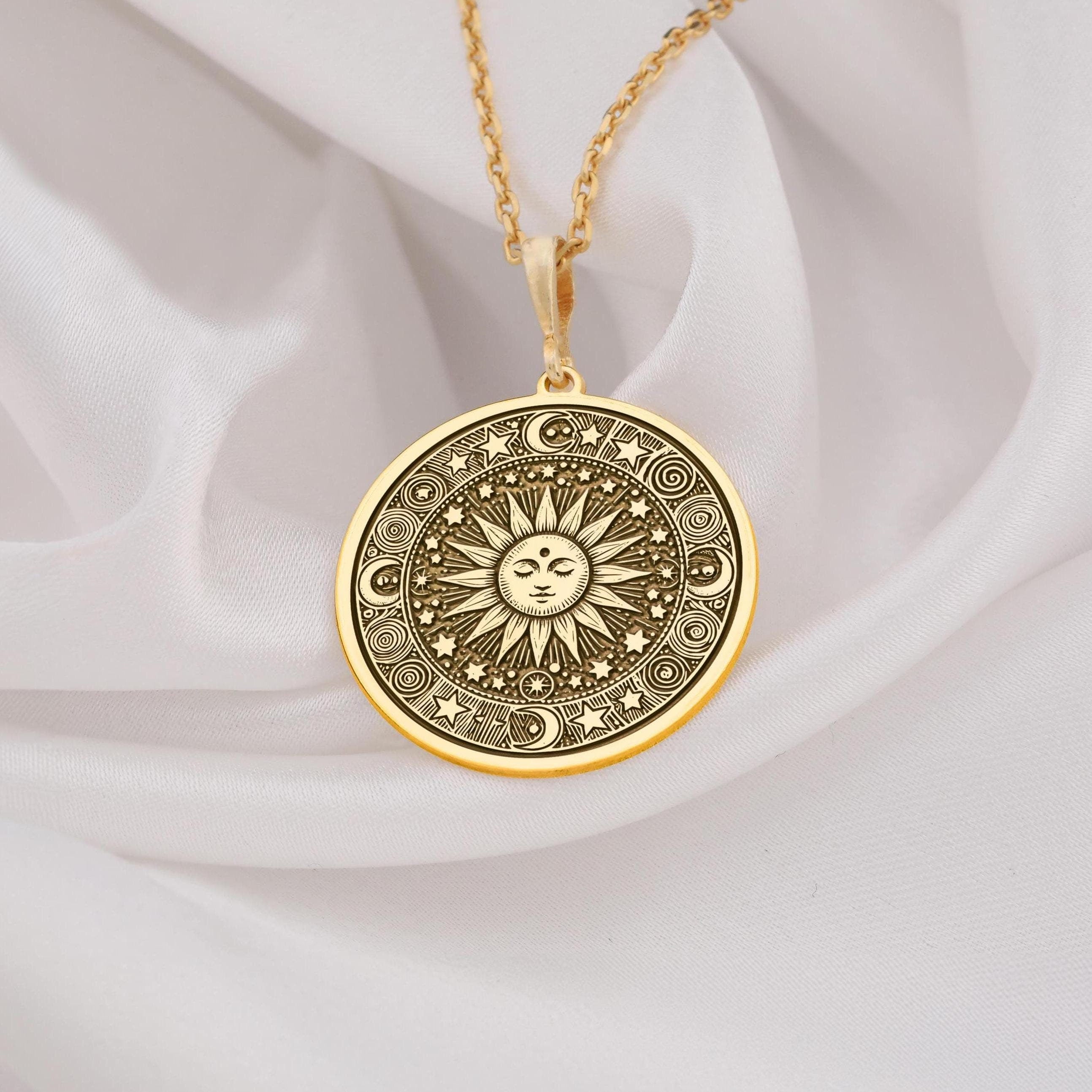 14K Solid Gold & Sterling Silver Sun Necklace is a stunning piece of celestial jewelry, perfect for astrology lovers and minimalist style enthusiasts. This handmade and personalized solar pendant is available in 14K Solid Gold, Sterling Silver, Gold Plated and Rose Gold Plated ensuring timeless elegance and durability. Its intricate sun pendant design makes it an ideal gift for birthdays, anniversaries, or special occasions for her, including moms, sisters, daughters, or best friends.