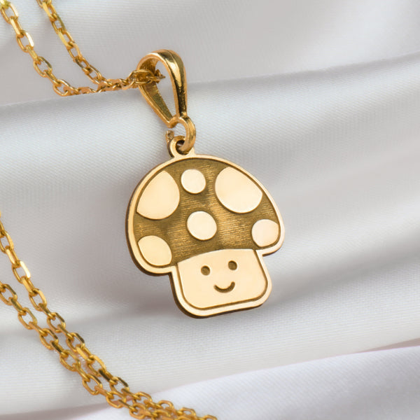 14K Gold and Silver Cute Mushroom Pendant - Whimsical Toadstool Charm for Nature Lovers, Handmade Fairycore Jewelry, Nature lover gifts