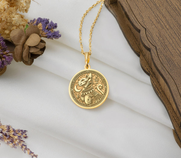 The 14K Gold Bastet Necklace is a unique handmade gold necklace designed to honor the ancient cat goddess Bastet, symbolizing protection, fertility, and motherhood. This Egyptian cat pendant combines timeless mythology with elegant craftsmanship, offering a solid gold cat charm that delivers both beauty and spiritual significance. Crafted from 14K solid gold with a pendant thickness of 0.8 mm and a bail diameter of 3.5 mm, this necklace ensures lasting quality and comfort. The chain matches the pendant material, providing a seamless look. Tested and approved with certified raw materials by the Central Bank of Turkiye, this Bastet goddess jewelry piece is a reliable choice for lovers of ancient Egyptian jewelry and mythology-inspired necklaces.