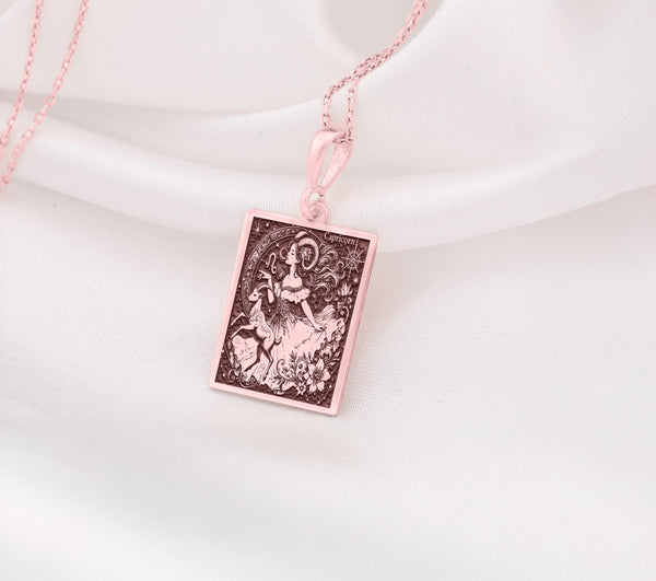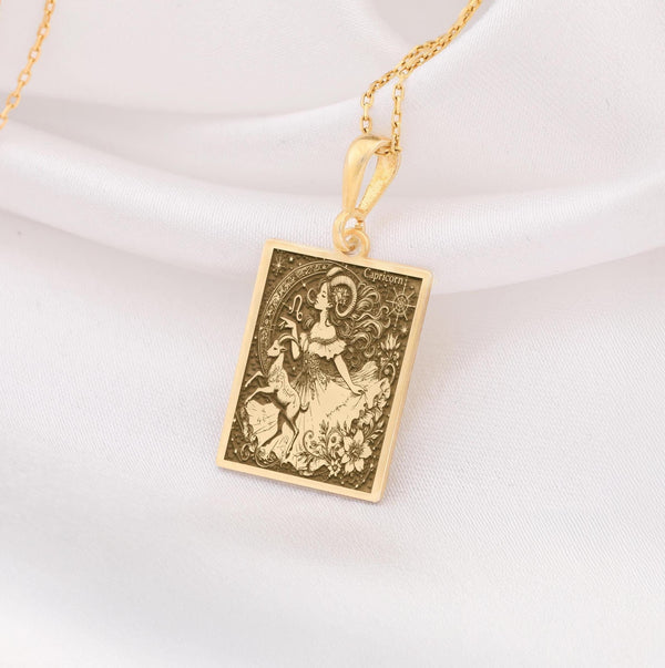 14K Gold Capricorn Zodiac Charm Necklace, Sterling Silver Astrology Pendant, Horoscope Jewelry Gifts, Constellation Charm Birthday Gifts