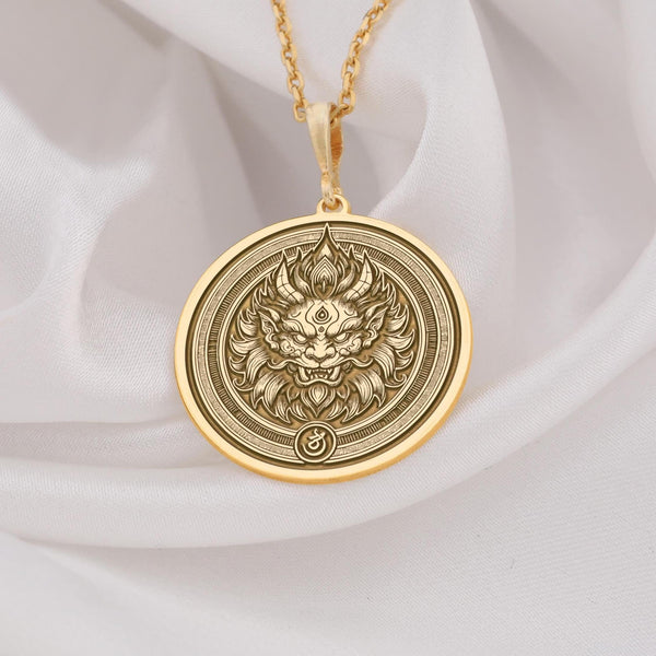 14K Solid Gold Asura Necklace, Hindu Asura demon necklace, Fierce Asura god necklace, Ancient Asura necklace, Asura symbolism necklace