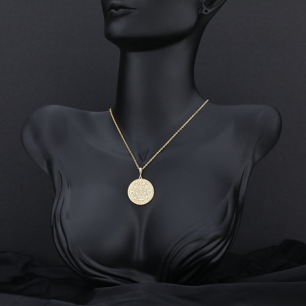 14K Solid Gold Aztec Calendar Pendant, Mayan Gold Jewelry, Perpetual Calendar Necklace, Aztec Calendar Coin Charm , Silver Mayan Necklace