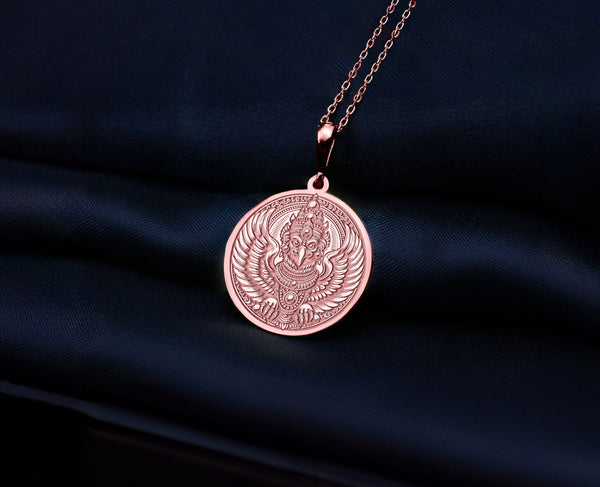 14K Solid Gold Garuda pendant Necklace, Garuda Silver Pendant , Devotee of Vishnu Garuda Pendant, Golden Winged Bird Necklace