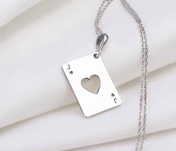 14K Solid Gold Jack Of Hearts Necklace, Silver Jack of Hearts Charm Pendant, Dainty Playing Card Necklace, Silver Knave of Hearts Necklace