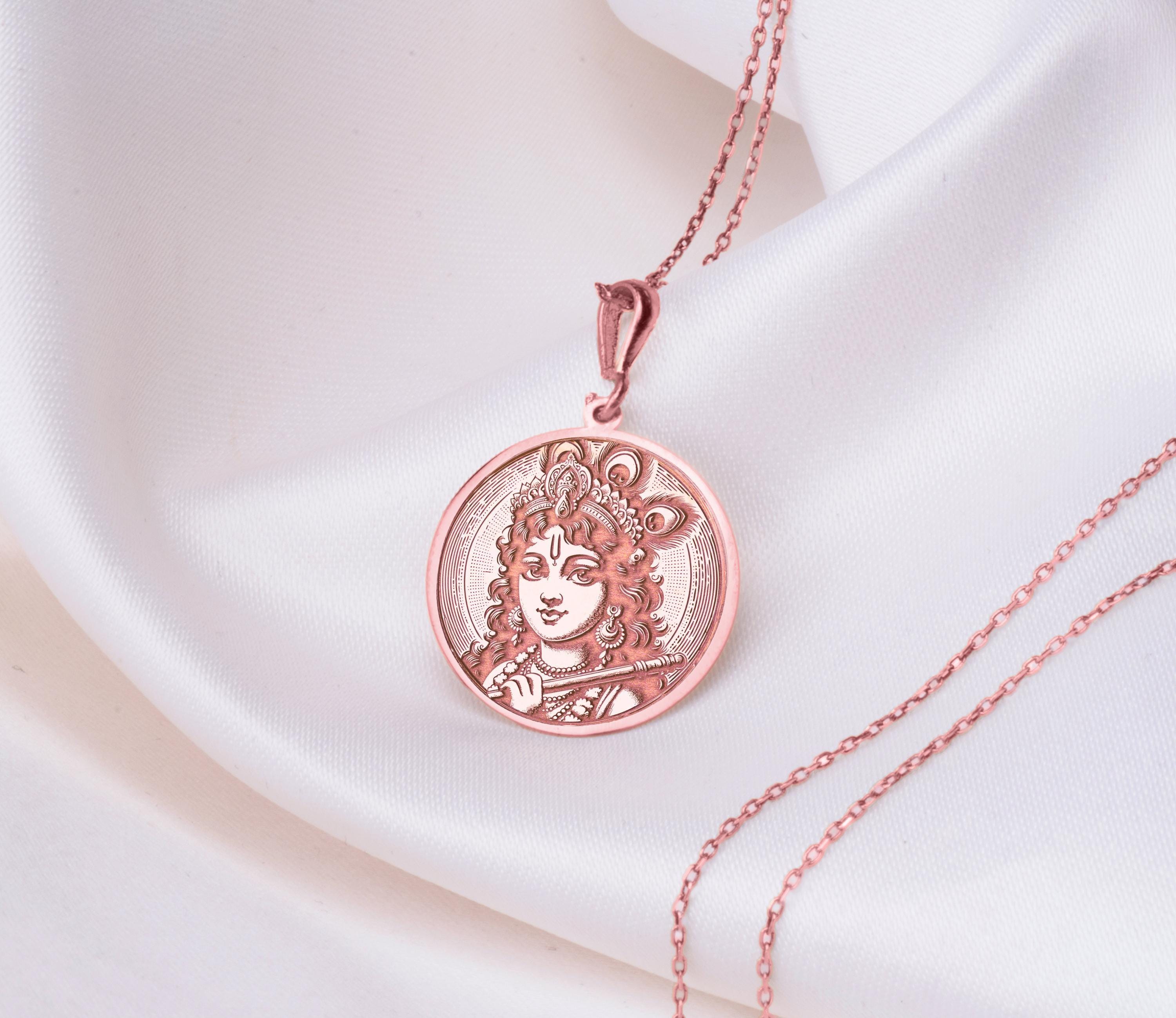 Krishna God Talisman Necklace | 14K Gold & Silver Options - Spiritual Protection Hindu Mythology