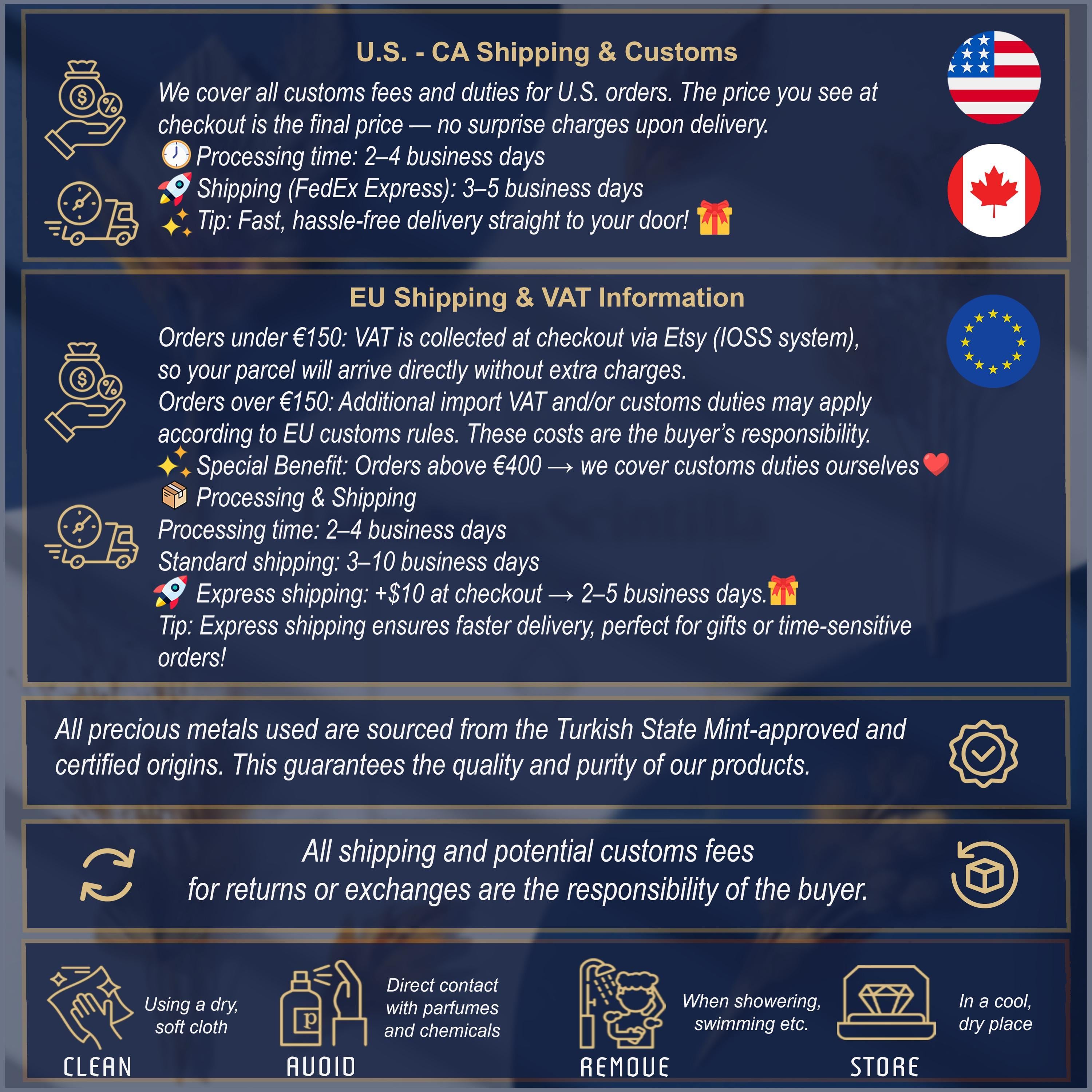 - Shipping to USA: 3-10 business days (we cover all U.S. customs fees).