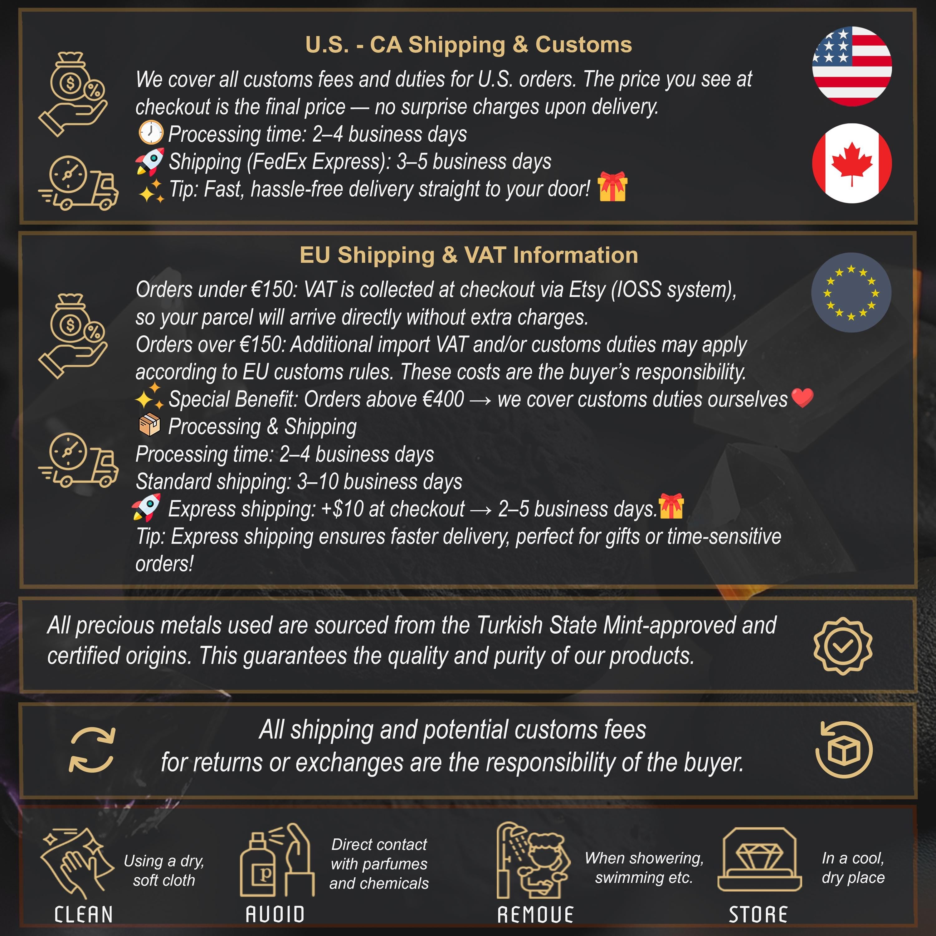 - Shipping to USA: 3-10 business days (we cover all U.S. customs fees).